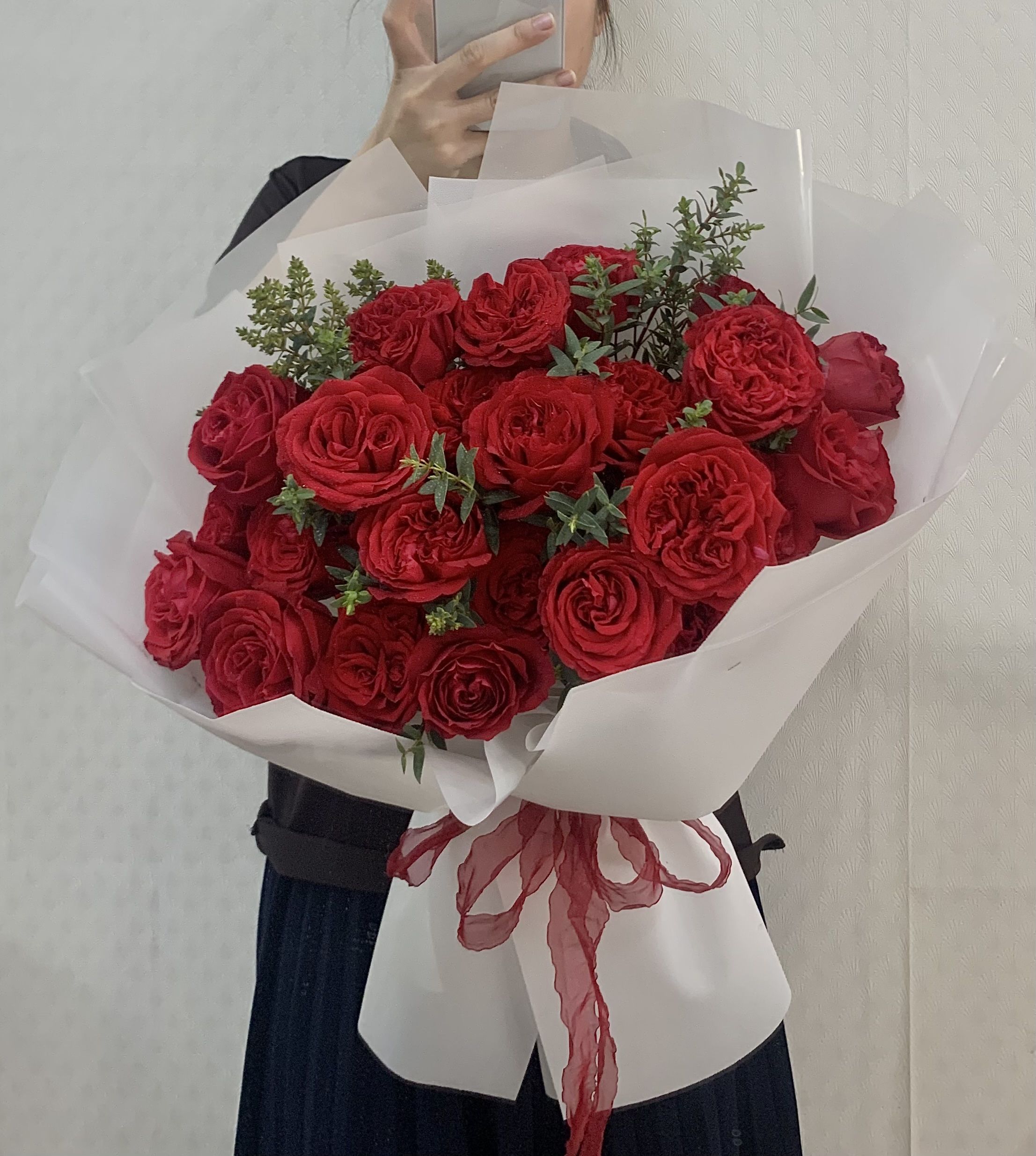 Loại hoa chính: Hoa hồng đỏ ohara và lá kiếm