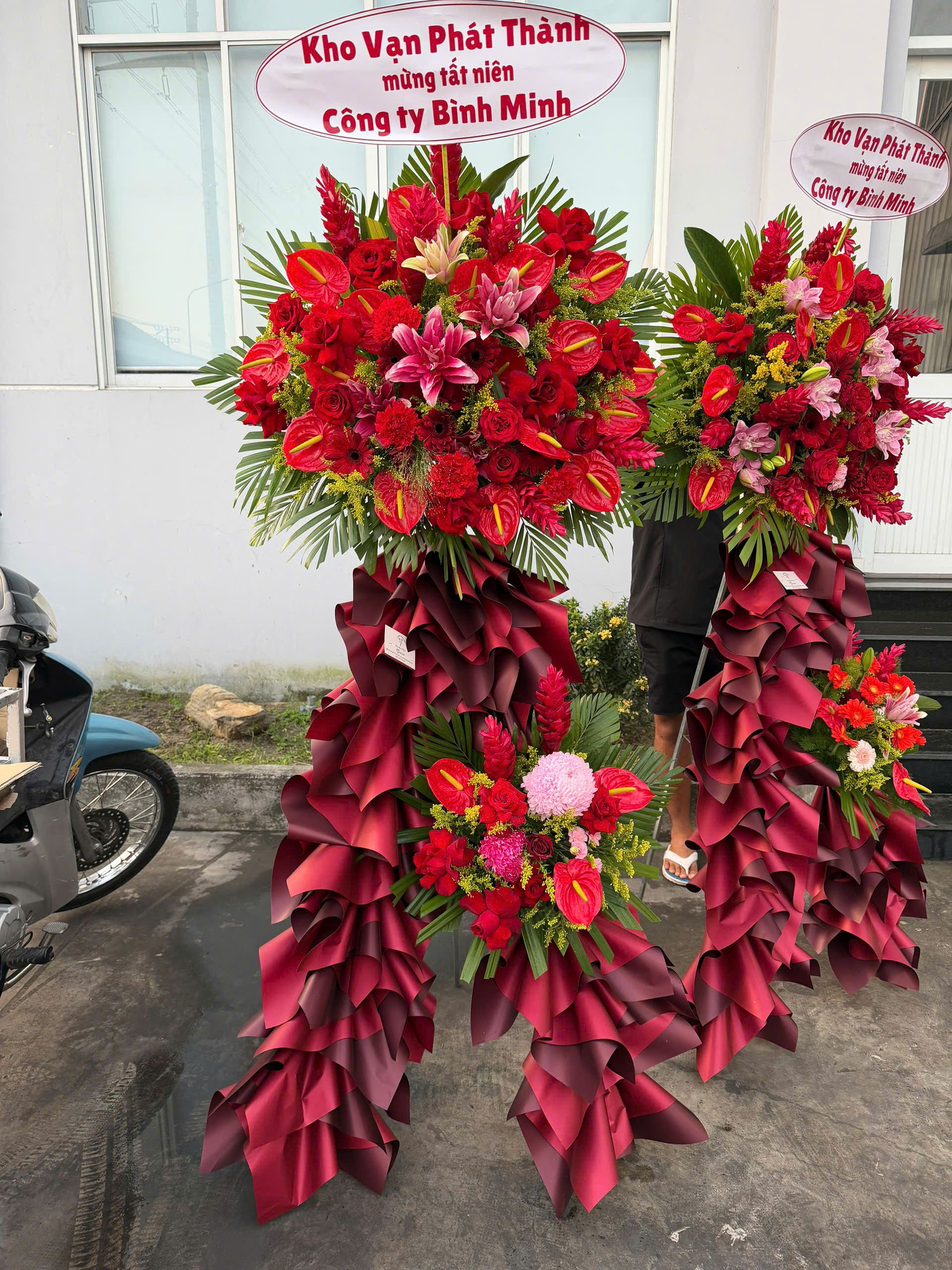 Loại hoa chính: Hoa hồng đỏ, hồng môn, cây hạnh phúc,…