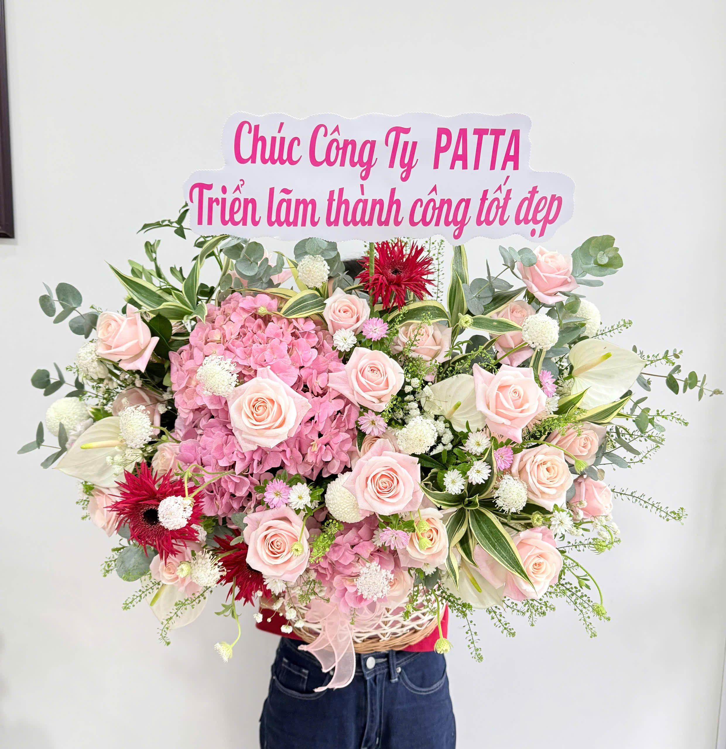 Giỏ hoa mang thông điệp chúc mừng – thành công – may mắn, rất phù hợp cho: